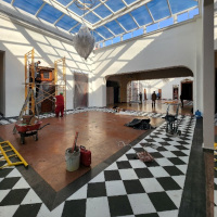 Cambio de piso, mármol Thaso en instalaciones de un palacio colonial en el centro histórico de la CDMX