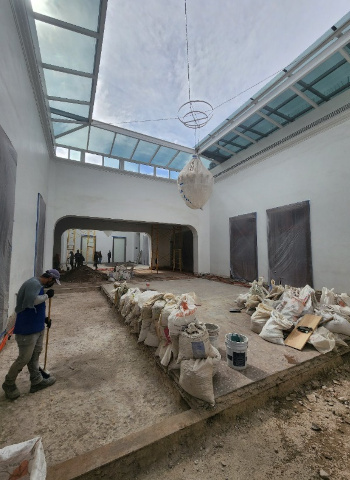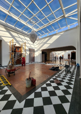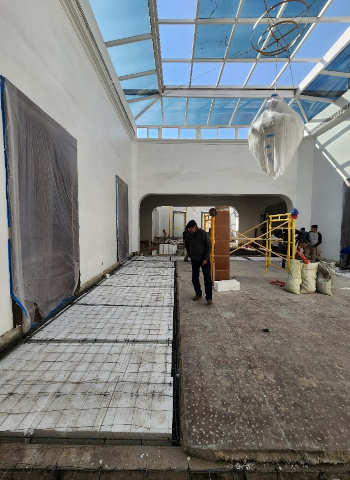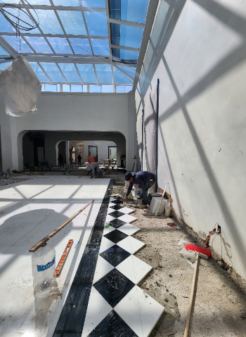 Cambio de piso, mármol Thaso en instalaciones de un palacio colonial en el centro histórico de la CDMX