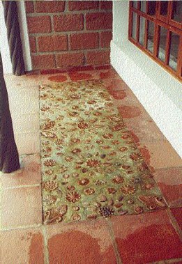 Tapete elaborado con piezas de barro, terraza en casa de San Miguel Ajusco.